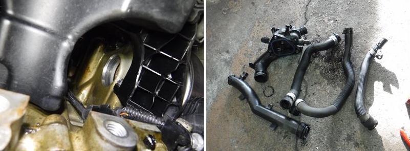 「プジョー308SWプレミアム サーモハウジング+バイパスパイプなど交換です。」