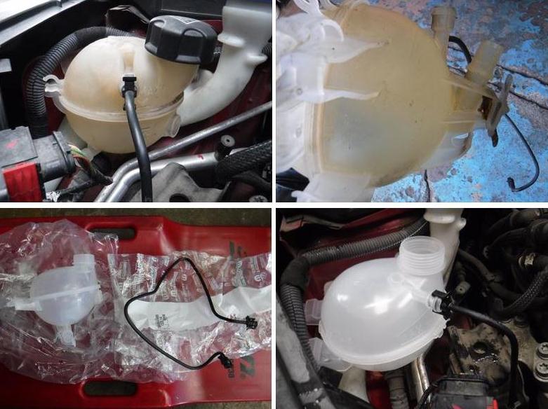 LLCリザーブタンクが劣化して漏れているので、ラジエーターブリーズパイプとともに新品交換。