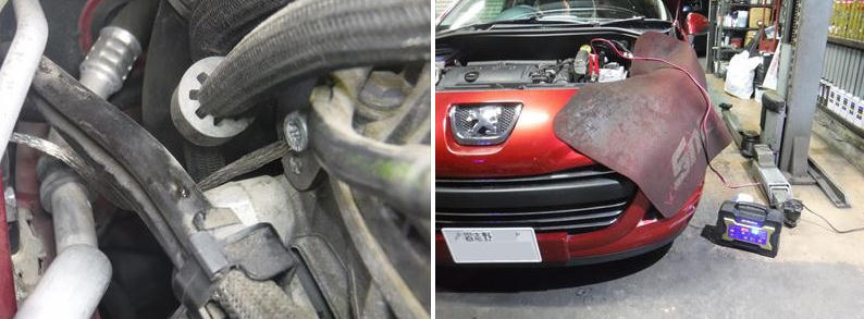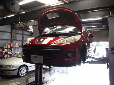 こちらのプジョー207プレミアム モロカンレッドは車検整備での入庫ですね。
