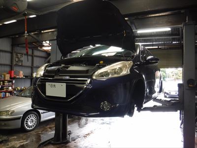 こちらのプジョー208シエロ ETG5 カラドブルーは車検整備での入庫ですね。