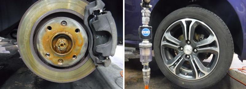 フロント+リアブレーキ廻りの点検、清掃。