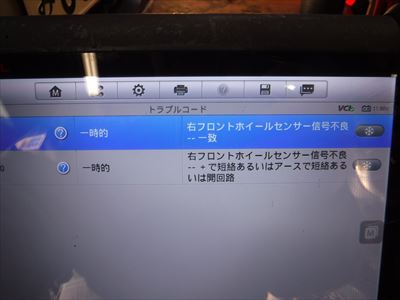 ABSエラーの原因は右フロントスピード信号不良。