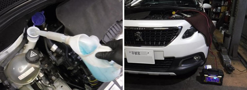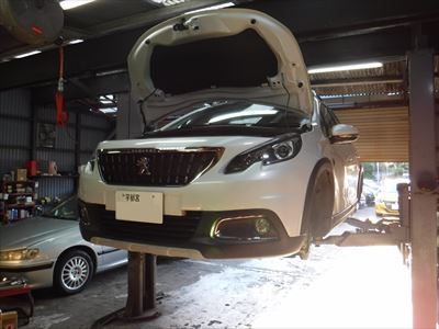 こちらのプジョー2008クロスシティ パールホワイトは12ヵ月点検での入庫ですね。