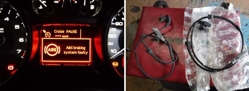 ABS braking system faulty警告と水温計の動きがおかしいとのこと。