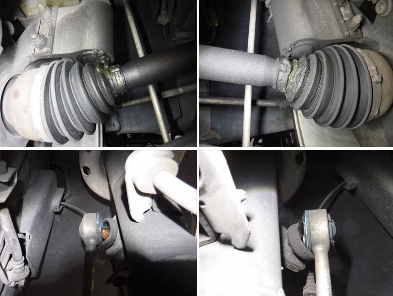 左右ドライブシャフトアウターブーツ切れ+スタビライザーリンクロッドブーツ切れ。