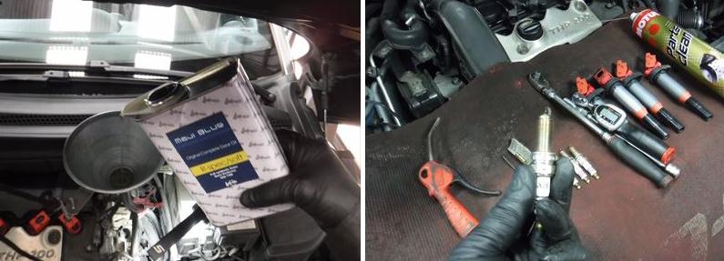 スパークプラグの点検・清掃。