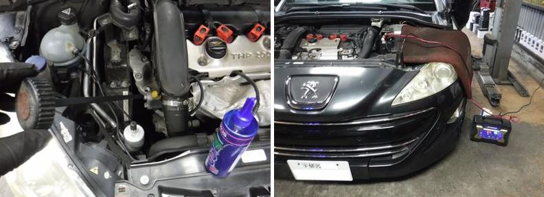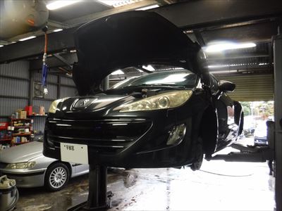 「プジョーRCZ 6MT 車検整備(ドライブシャフトブーツ+スピードセンサー+ラジエーターファンレジスター交換など)です。」