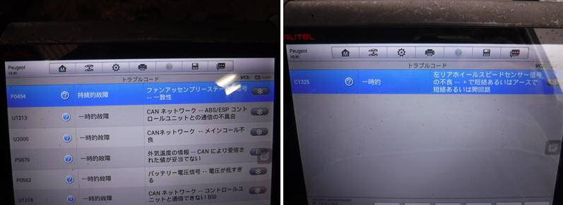 ABSフォルトは左リアスピード信号不良が原因ですね。