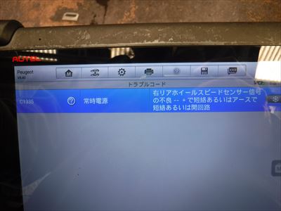 こちらのプジョーRCZ トゥアナケブルーはABS警告点灯修理とバッテリー交換、
