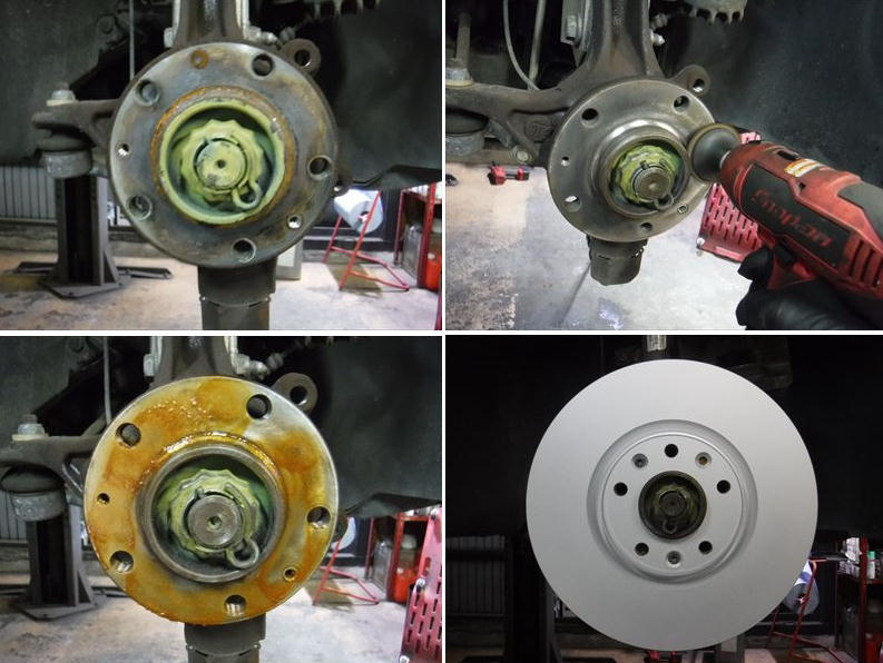 ハブは磨いて清掃後に高耐熱防錆グリースを塗布してから新品のディスクローターに交換。