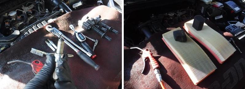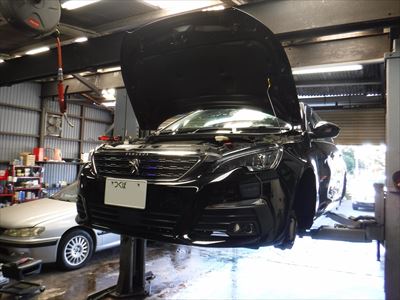 こちらのプジョー308アリュール ペルラネラブラックは車検整備での入庫ですね。