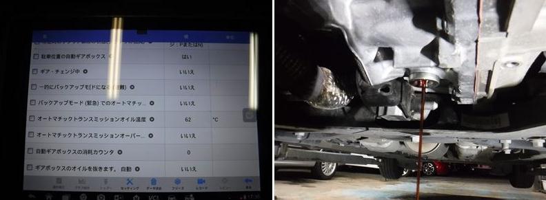 ATフルード循環後にテスターでATF油温をチェックして油量調整などで、継続検査を受けて完了です。
