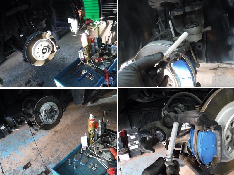 ブレーキパッドの面取りに、スライドピンなど各部グリスアップして組み戻し。