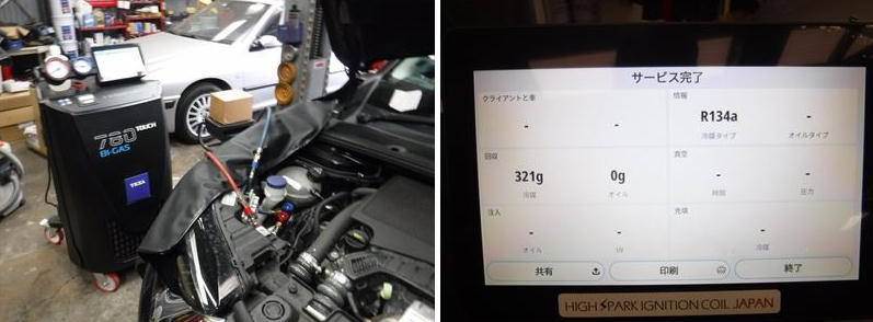 K780Tで真空引+コンプレッサーオイル+ACガス充填。