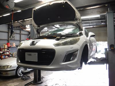 「プジョー308CCグリフ × 2 12ヵ月点検(F低ダストブレーキパッド交換) / リアスピードセンサー交換です。」
