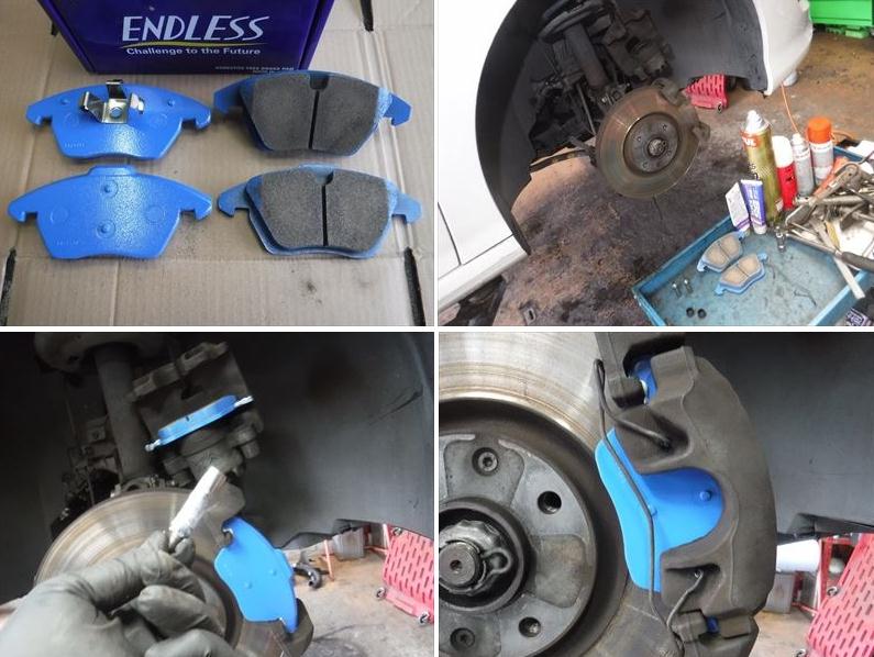 フロントブレーキ廻りの点検、清掃後に各所グリスアップしてAUTOPRO ARB SuperStreet PADに新品交換。