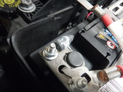 バッテリー+端子にハイスパークノイズリダクションターミナル取付。