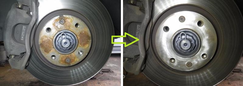 ホイールハブは小型バフで磨いて清掃後に、セラミックグリースを塗布。