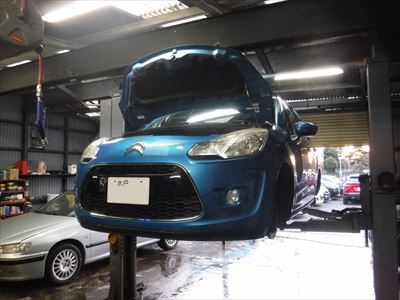 こちらのシトロエンC3 エクスクルーシブ ブルーベリルは車検整備での入庫ですね。