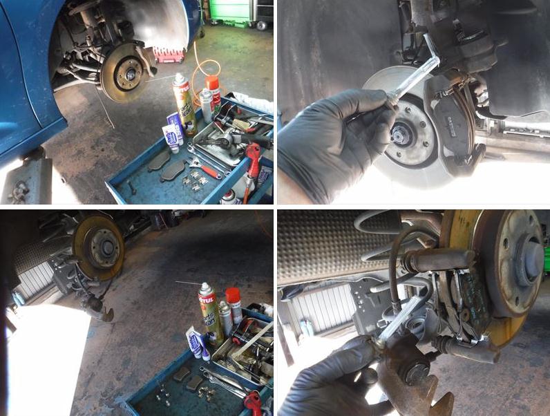 ブレーキパッドの面取りに、スライドピンなど各部グリスアップして組み戻し。