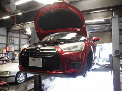 こちらのシトロエンDS4スポーツシック ルージュバビロンは車検整備での入庫ですね。