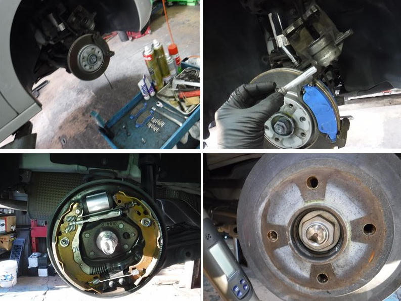 リアドラムブレーキのハブロックナットは新品を使用、規定トルクで締付後に回り止め。