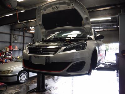 こちらのプジョー308GT Blue-HDi パールホワイトは車検整備での入庫ですね。