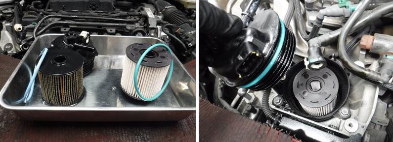 「プジョー308GT ブルーHDi 車検整備(燃料フィルター+ATフルード交換など)です。」