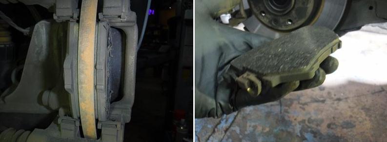 リアブレーキパッドは左側が特に摩耗している感じですね。