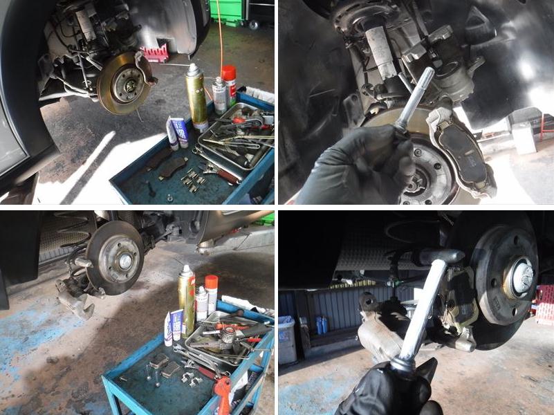 ブレーキPADの面取りに、スライドピンなど各部グリスアップして組み戻し。