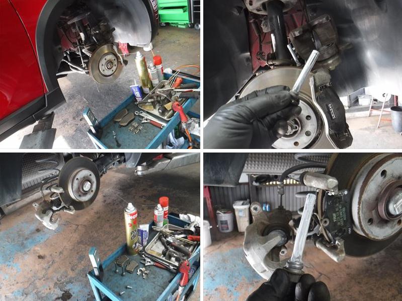 ブレーキPADの面取りに、スライドピンなど各所グリスアップして組み戻し。