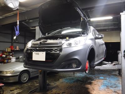 こちらのプジョー208GTi アイスシルバーは車検整備での入庫ですね。