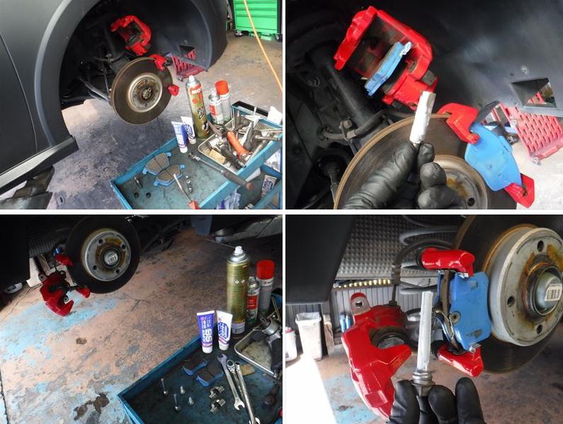 ブレーキPADの面取りに、スライドピンなど各部グリスアップして組み戻し。