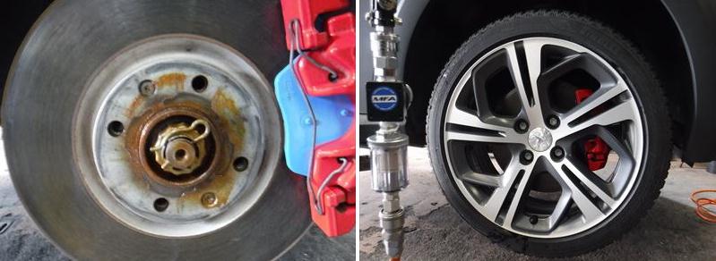 ホイールハブには高耐熱防錆グリースを塗布して、タイヤのエアーはMFAで充填。