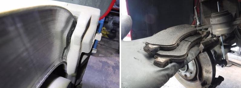 フロントブレーキはディスクローター、ブレーキパッドともに摩耗しているので…。