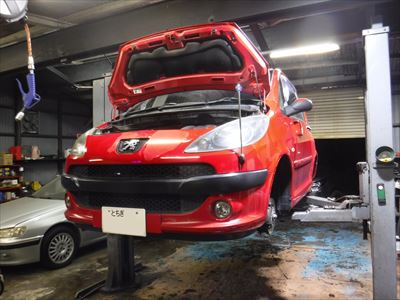 こちらのプジョー1007-1.6 アデンレッドは車検整備での入庫ですね。