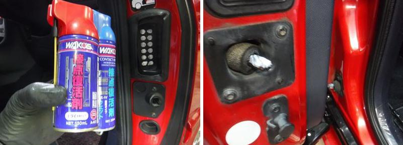スライドドアターミナル接点の清掃+ガイドのグリスアップ。